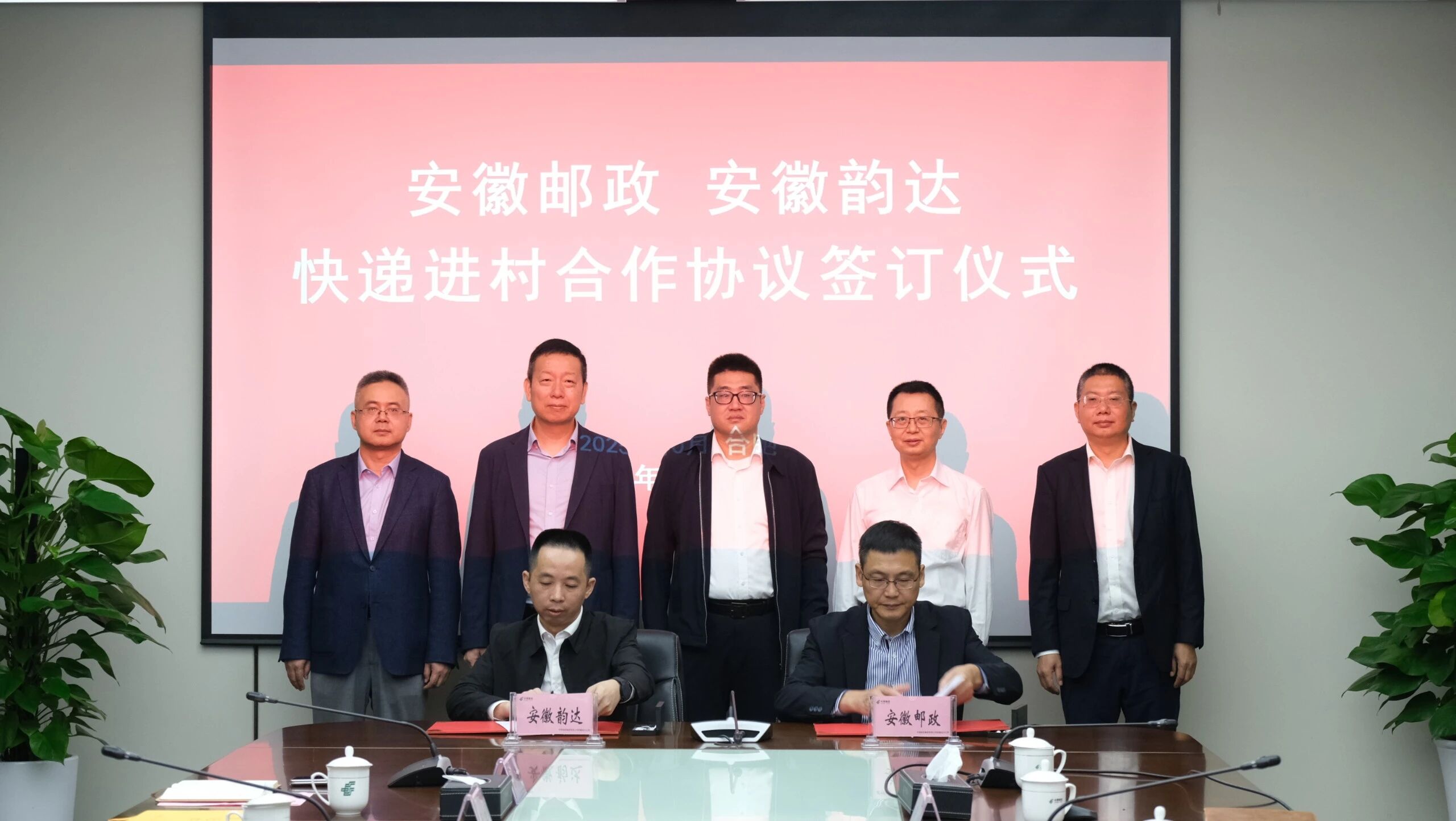 中国邮政安徽省分公司党委书记、总经理刘支宇,安徽省邮政管理局党组成员、副局长李峰,中国邮政安徽省分公司党委委员、副总经理满峰,韵达执行总裁,韵达安徽省公司总经理等参加签订仪式。