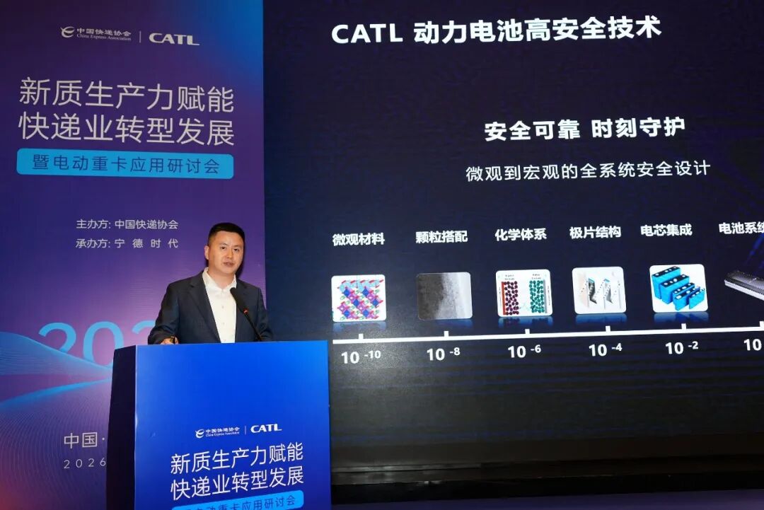 为深入贯彻国家 “双碳” 战略、交通强国建设与物流降本增效工作部署,加快推动快递干线运输绿色低碳、智能高效转型,近日,由中国快递协会主办、宁德时代承办的新质生产力赋能快递业转型发展暨电动重卡应用研讨会在福建宁德成功举行。本次会议汇聚政府相关部门、行业协会、快递物流企业、主流整车制造企业、电池能源企业、充换电及能源服务机构等全产业链代表,共商电动重卡规模化应用路径,共解行业转型痛点难题,共筑快递干线零碳运输产业新生态,为我国快递物流业高质量发展注入强劲动能。