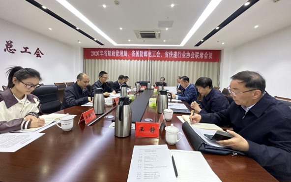 4月8日,省邮政管理局、省国防邮电工会、省快递协会召开2026年联席会议,总结2025年工作情况,研究部署2026年工作任务,审议通过三方联席会议制度。省邮政管理局党组书记、局长陈敬讲话,省总工会副主席、党组成员柴磊致辞,省快递协会会长万松博出席会议。