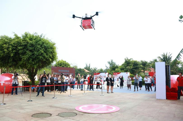 今日上午,京东无人机载着货物从海口市长流镇配送点起飞出发,并成功实现首单配送。这意味着由京东物流、京东X事业部在海南省试运营的第一个无人机配送站正式启用。“通过在海南进行全场景的末端无人机配送试验,将为未来无人机物流标准的建立和更大规模地应用打下基础。”京东集团X事业部无人机运营中心总经理刘艳光说。