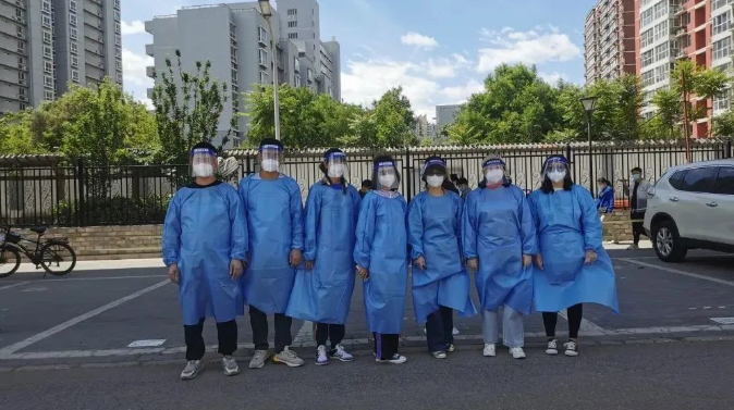 在核酸检测现场,他们穿上蓝色或白色防护服,他们有的负责核查健康宝、有的负责登记居民信息、有的负责维持现场秩序,一站就是四五个小时,顾不得喝一口水。