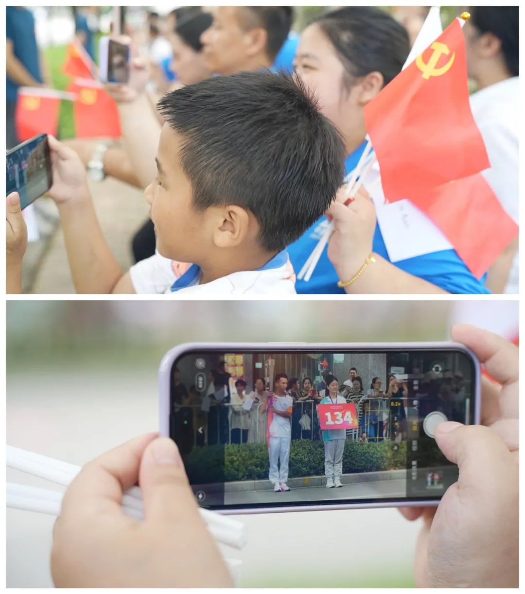 对他和身边的亲人来说,这一天意义非凡。一大早,许凯金的妻子吴娅楠和儿子还有“快递后援团”请好假在路边等待。“我的爸爸是我心目中的大英雄,他是一名快递员,也是一名火炬手。超酷的!爸爸加油。”吴娅楠握着儿子激动的手,给奔跑路过的许凯金拍照。“要记录下这么有意义的瞬间。”