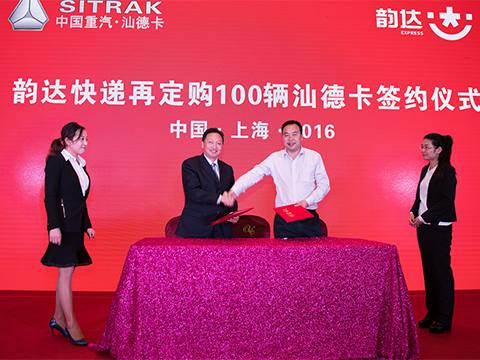 会上还进行了韵达速递与中国重汽集团济南商用车有限公司首批100辆汕德卡车的交车仪式。这是继韵达速递3月份引进68台豪沃系列车型后,又一次发力陆路运输举措。在交车的同时,韵达速递与中国重汽集团又签署了再订购100辆汕德卡的合作意向。同时,圆通、中通、百世快递也与中国重汽集团及上海安镕重汽汽车销售有限公司共同签署了合作协议。
