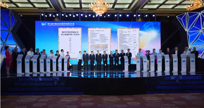 在大会的签约仪式上,中国邮政速递物流、顺丰、申通、韵达、中通、圆通、百世、宅急送、德邦、菜鸟、京东物流等国内知名快递物流企业与桐庐县人民政府签订战略合作框架协议。根据协议,桐庐县政府与各企业合作方将在人才、技术、项目等方面展开合作。同时,申通国际也与DIRECT LINK(捷递环球)签订了战略合作协议。