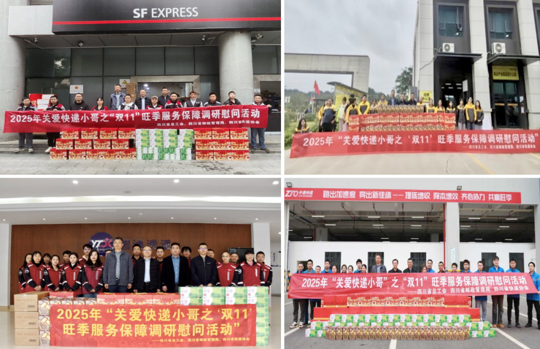 为贯彻落实国家邮政局关于做好快递业务旺季服务保障工作的相关要求,确保今年“双11”旺季期间快递服务安全、平稳、有序运行,努力打造“暖心旺季”,四川省快递协会组织开展2025年关爱快递小哥之“双11”旺季服务保障调研慰问活动。